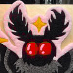 -Adorable Mothman with grey mothy details, large red eyes & surrounded by sparkles... of course :) with a pink background